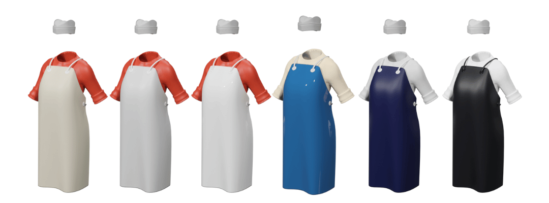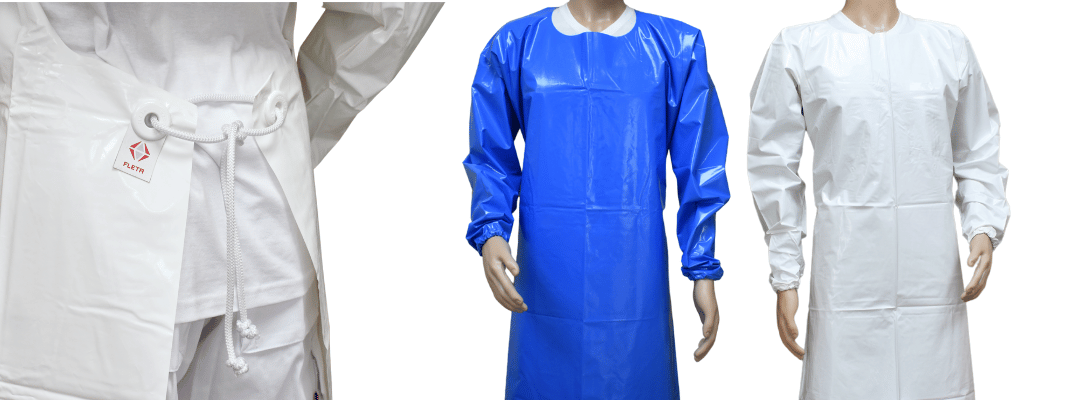 Delantal con mangas apto para la industria alimentaria. Cómodo, elástico y ligero, con alta resistencia al desgarro. Sin costuras para facilitar la higiene.