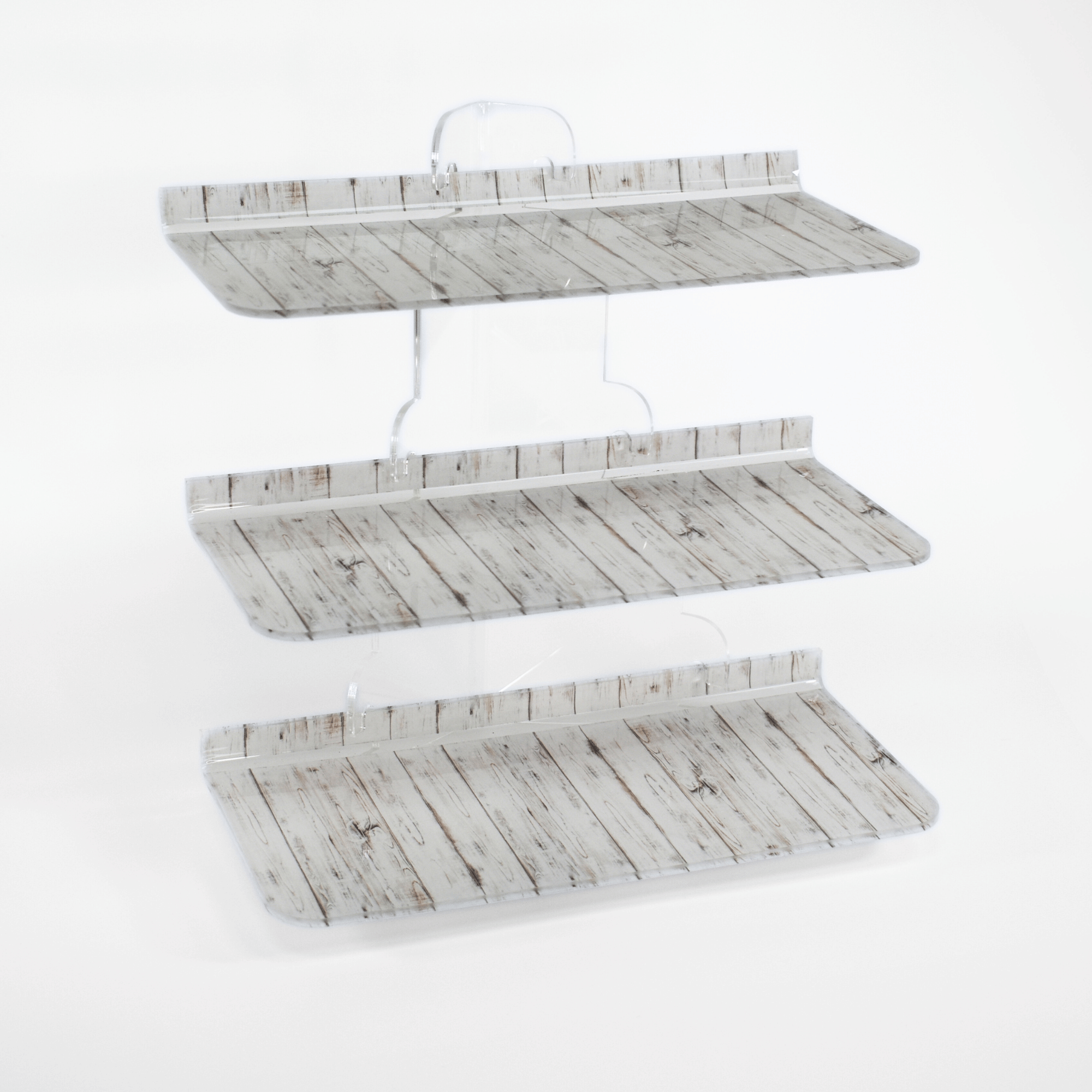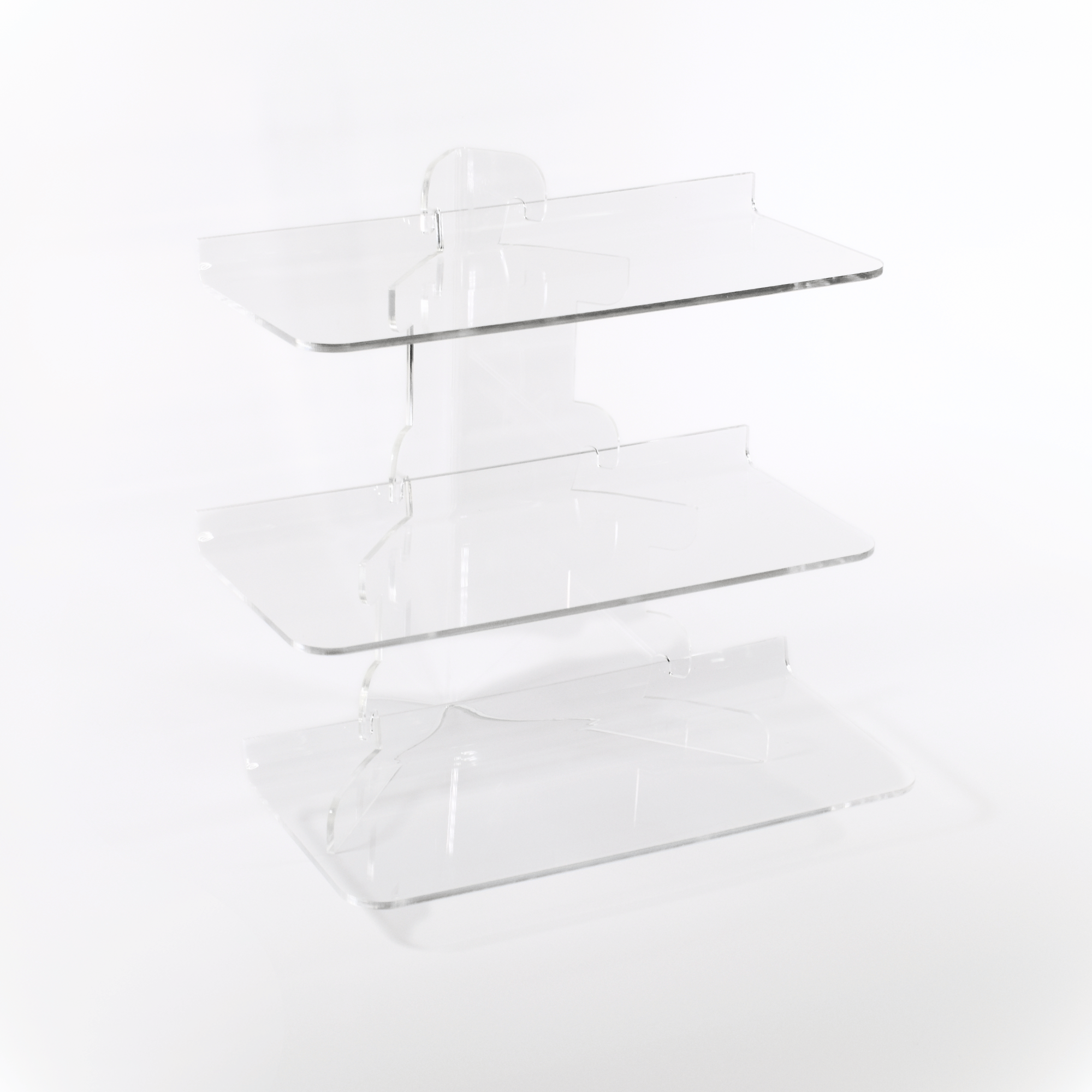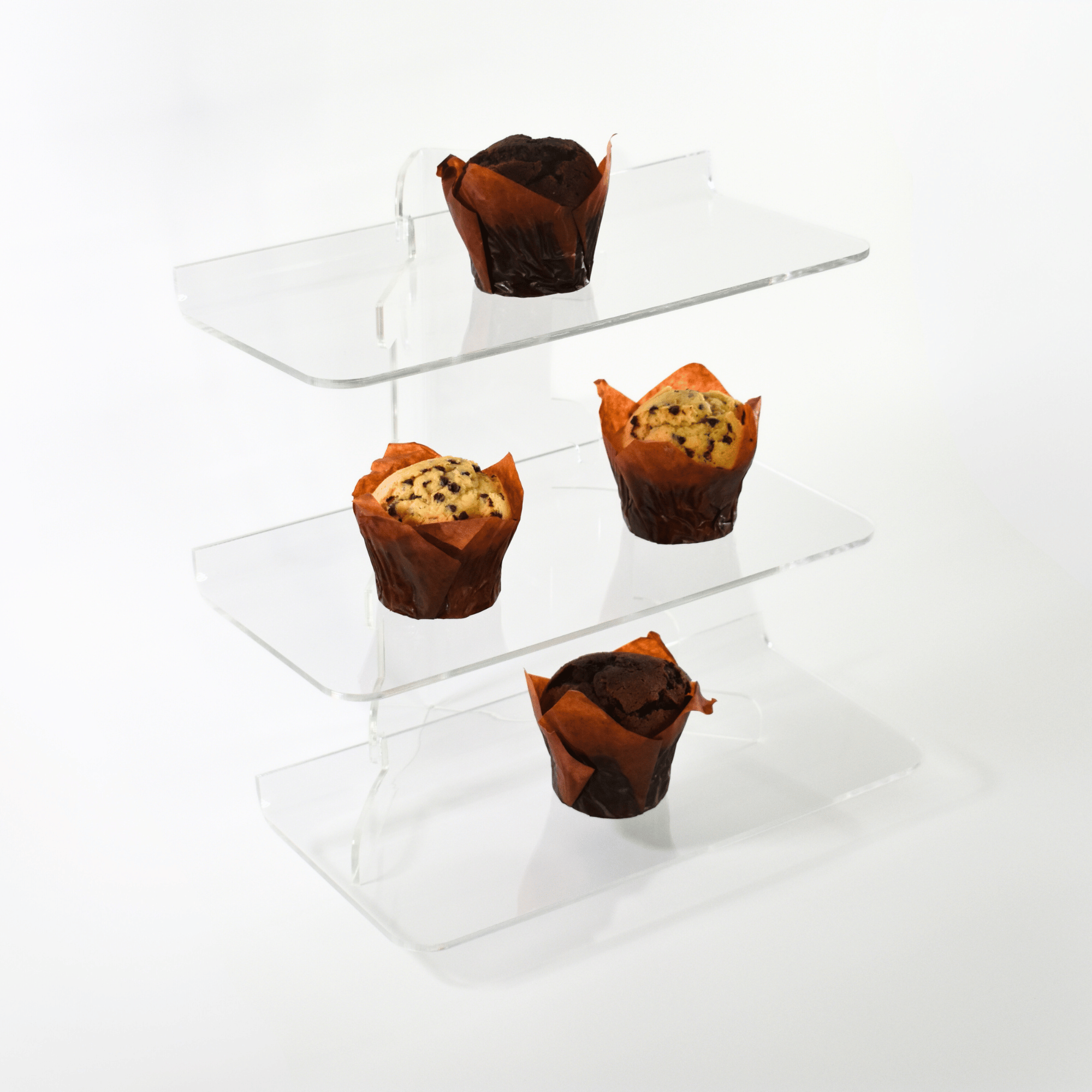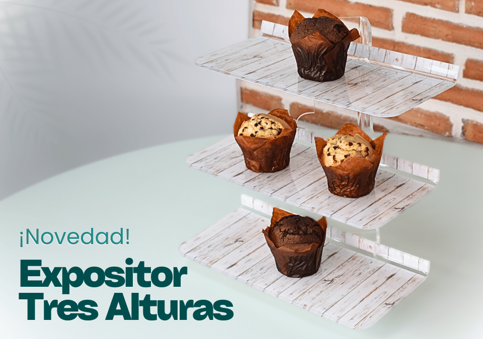 Sus tres alturas permiten una presentación escalonada, destacando cada producto de manera individual.